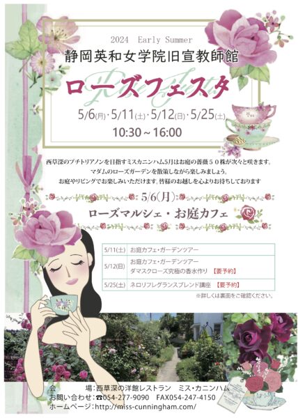 2025年4月~5月イベントのご案内 2025.03.25 春らしい陽気になってまいりましたね。バラの新芽が芽吹き出しています。今年は勢いが良さそうで、大輪のバラも期待できそうです。4月5月はお庭もお楽しみいただけるようなイベント企画いたしました。 詳しくみる